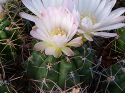 do rośliny lub nieco zakrzywiony. Kwiaty duże, kremowo-białe do kremowo-różowych