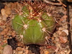 tuż nad areolami. Areole z małą ilością brązowej wełny. Ciernie promieniste 5-7, ale opisywano do 20.