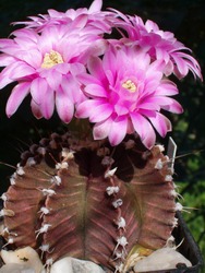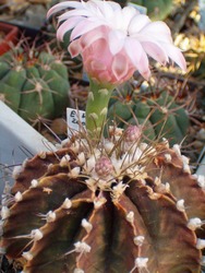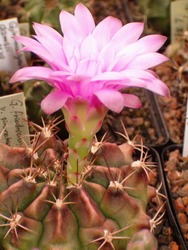 v. melocactiformis - popularna odmiana o różowych kwiatach, 5 długich i odstających cierni