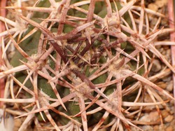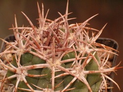 Ogólnie roślina kulista z czasem niska kolumna, szaro-zielona z żebrami w ilości 11-13. Ciernie
